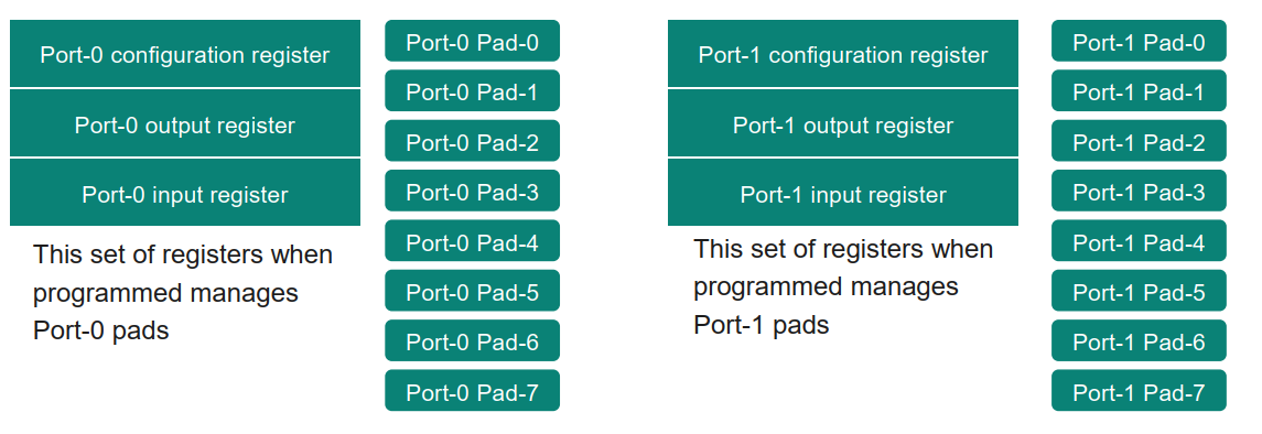Figure 4: A block diagram showing the set of registers and pads of respective ports.