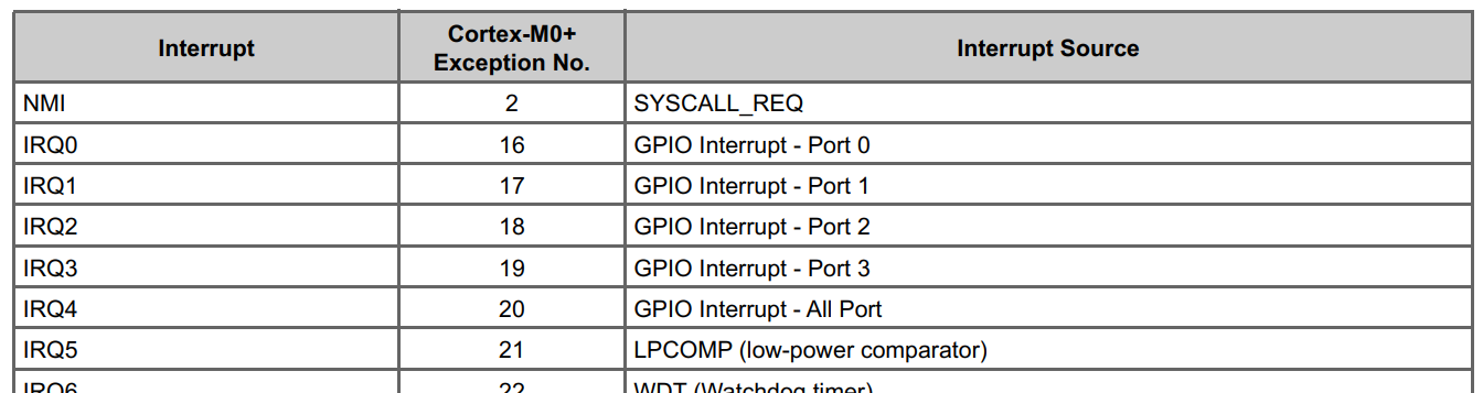 - Priority: We set the priority of IRQ #3 (which maps to Port 3, we can also observe from Figure 8. that IRQ #3 is for GPIO Interrupt - Port 3) to