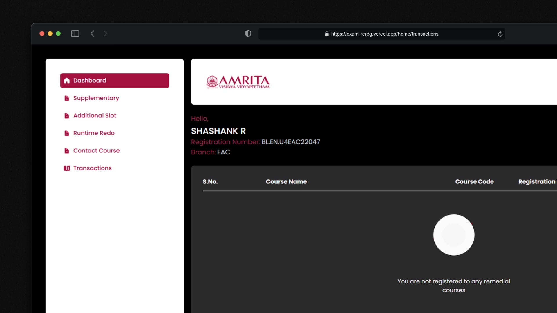 Exam Re-Registration Portal